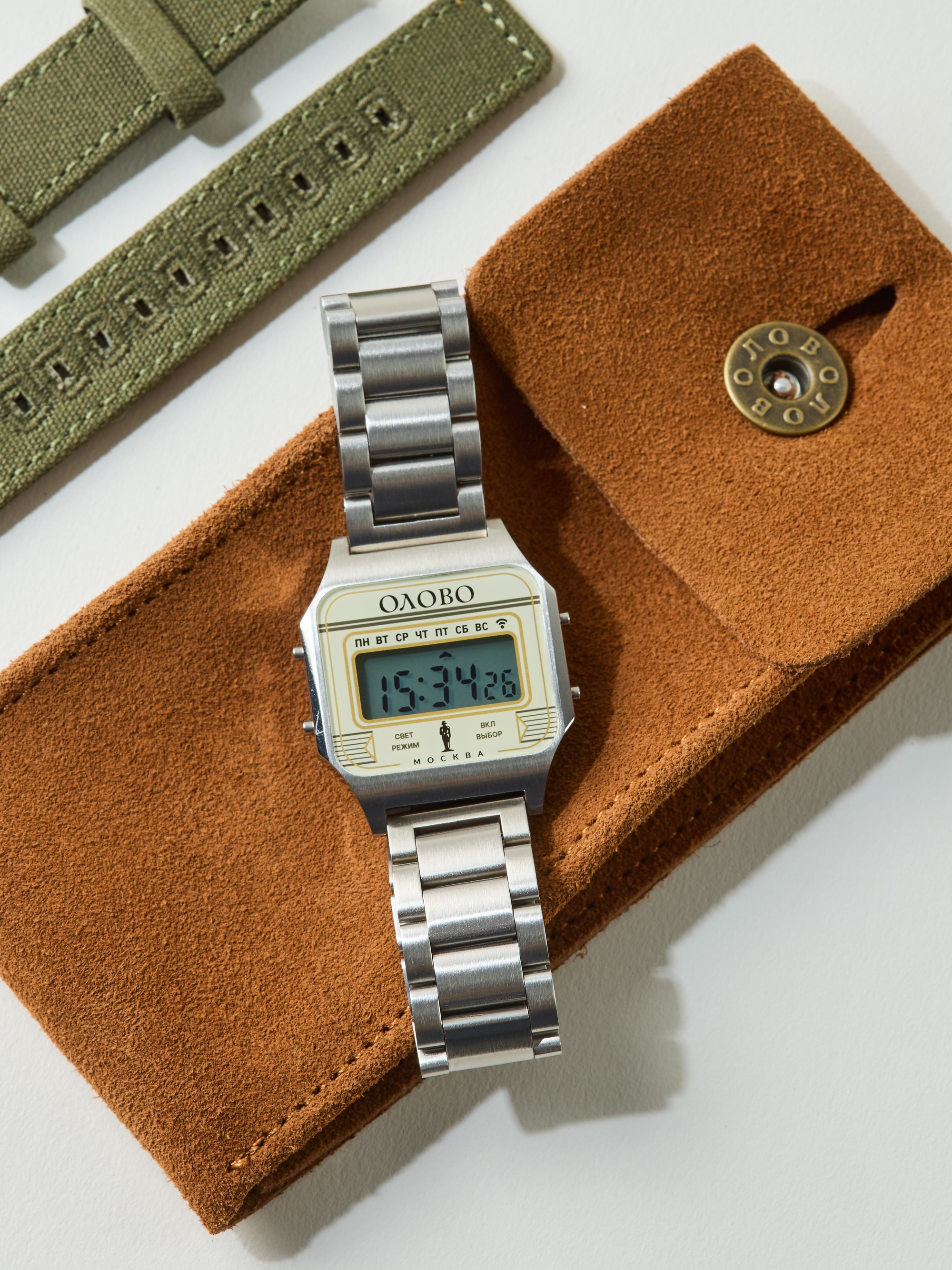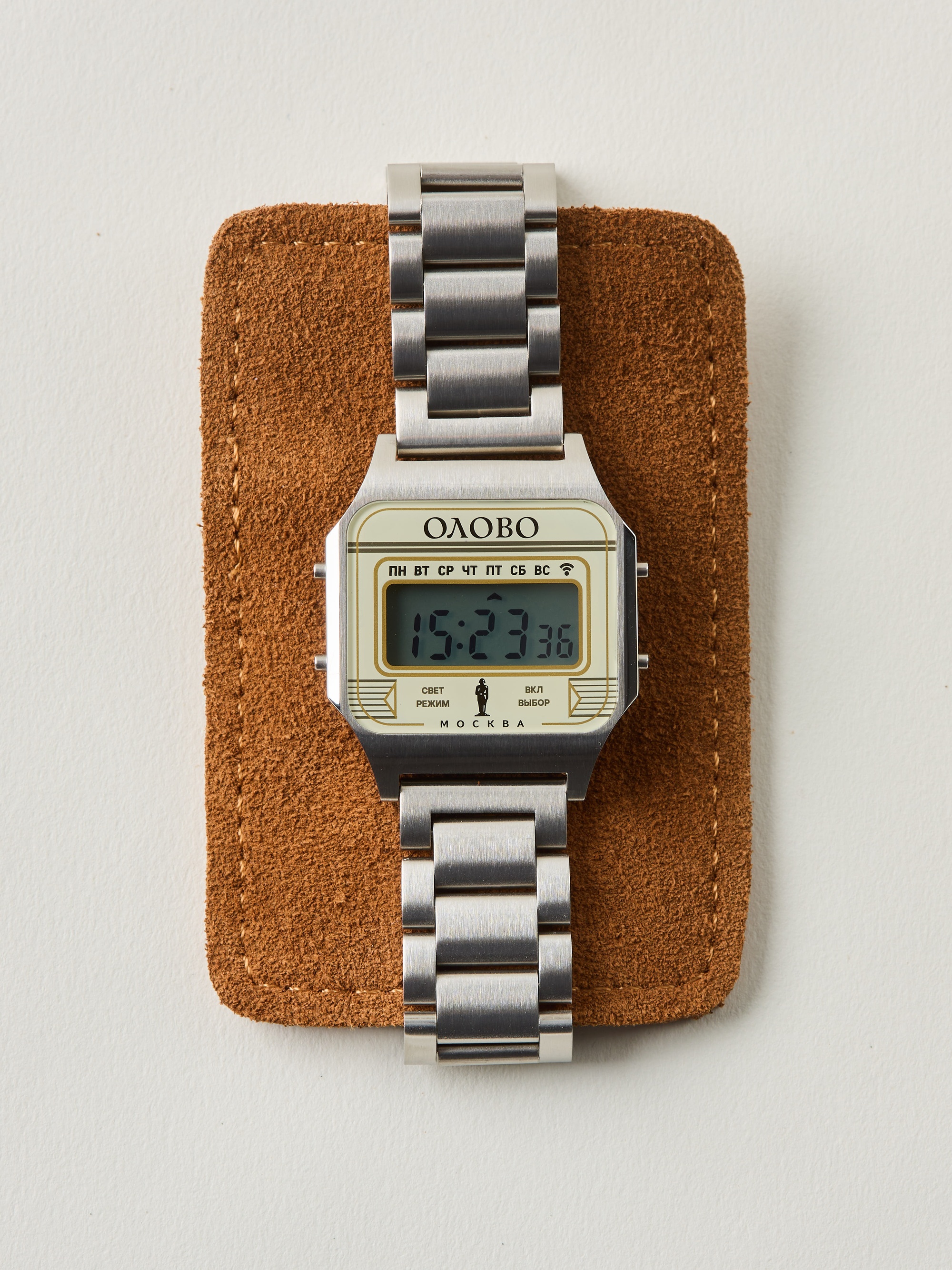 Часы ОЛОВО х «Электроника» созданы на основе легендарных советских цифровых часов бренда Электроника, появившихся в 1970-х годах. Это были одни из первых массовых электронных наручных часов в СССР, символ перехода к кварцевым технологиям. Лаконичный прямоугольный корпус, цифровая индикация и практичный функционал сделали модель по-настоящему культовой.