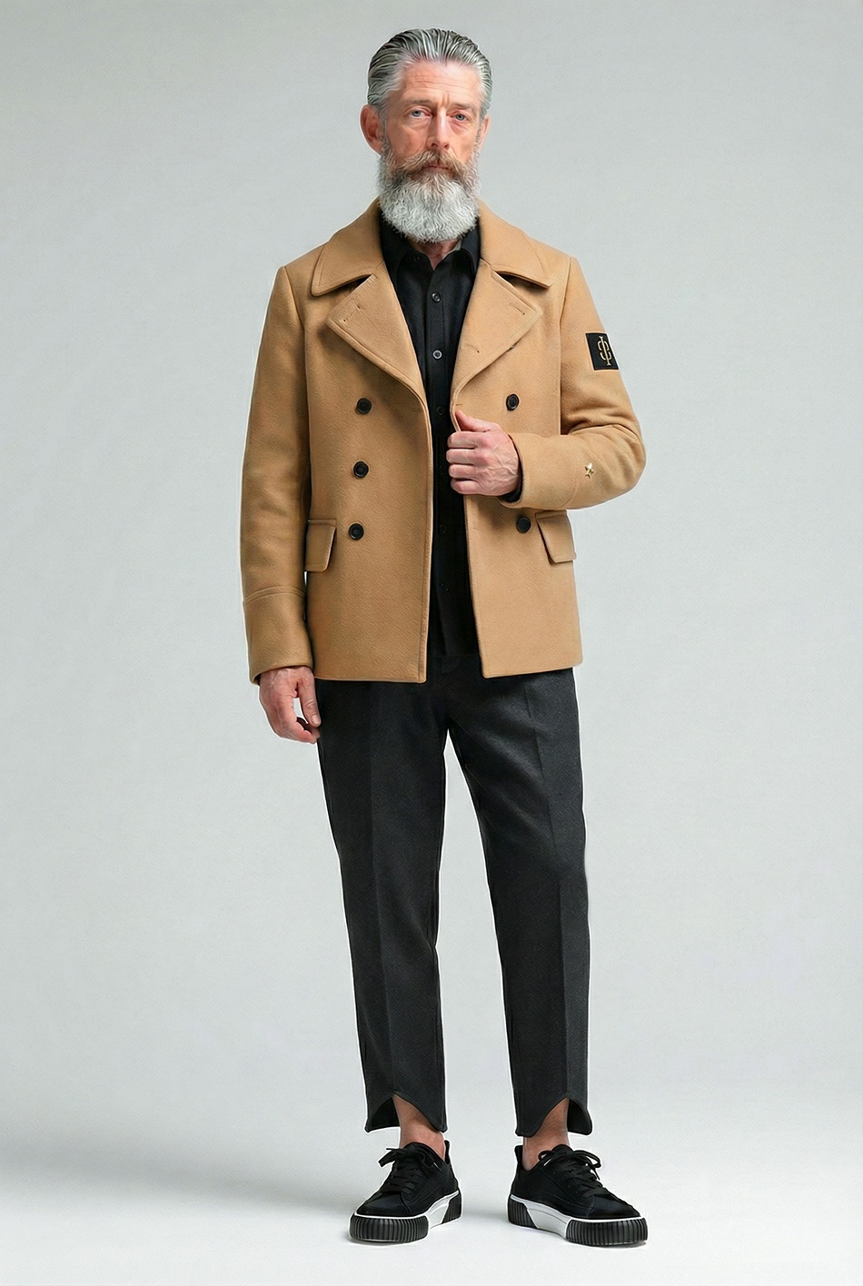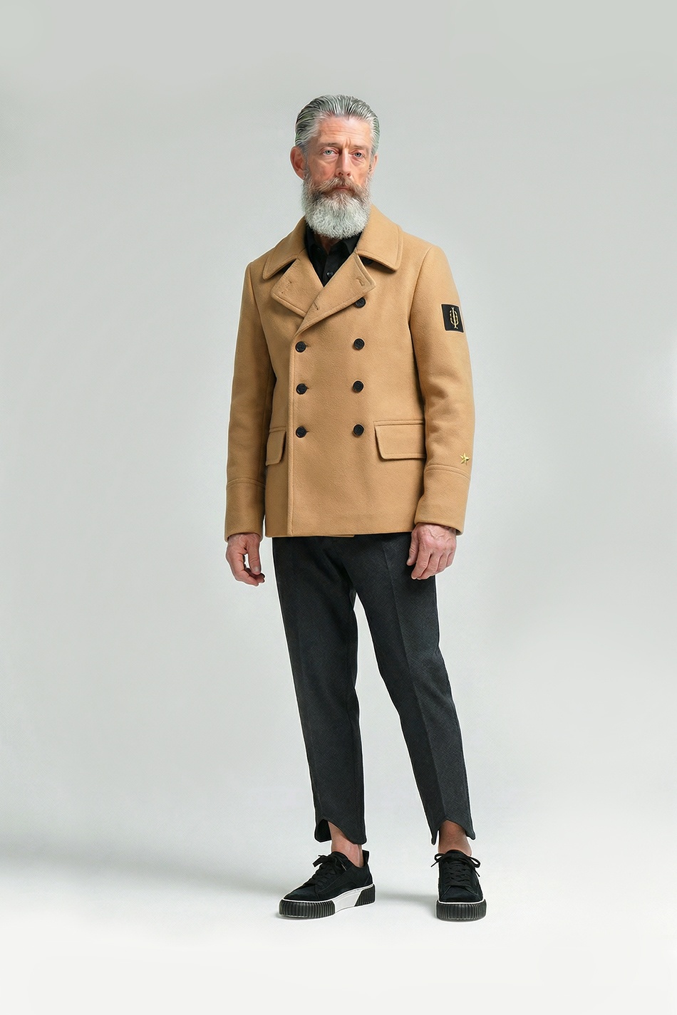 Двубортный бушлат на утеплённой стёганой подкладке. Создан на основе бушлата ВМФ.
