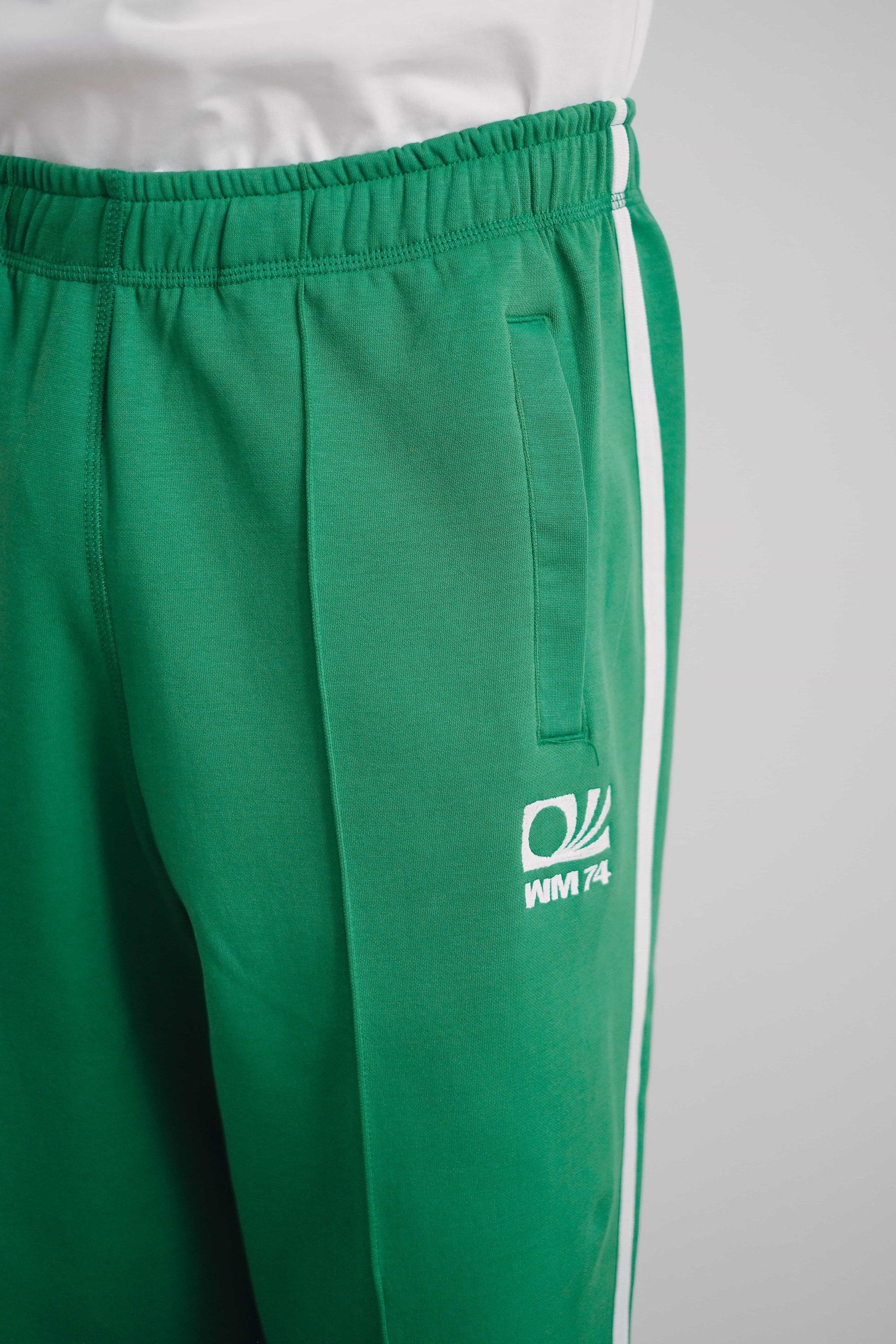 Брюки вместе с олимпийкой DDR осотавляют cпортивный костюм DDR. Он вдохновлен футбольной эстетикой  эпохи 70-ых гг. Вышивка DDR на олимпийке - герб Германской Демократической Республики, которая впервые приняла участие  в ЧМ по футболу 1974 года. Брюки, дополняющие этот образ, украшены эмблемой одноименного турнира.