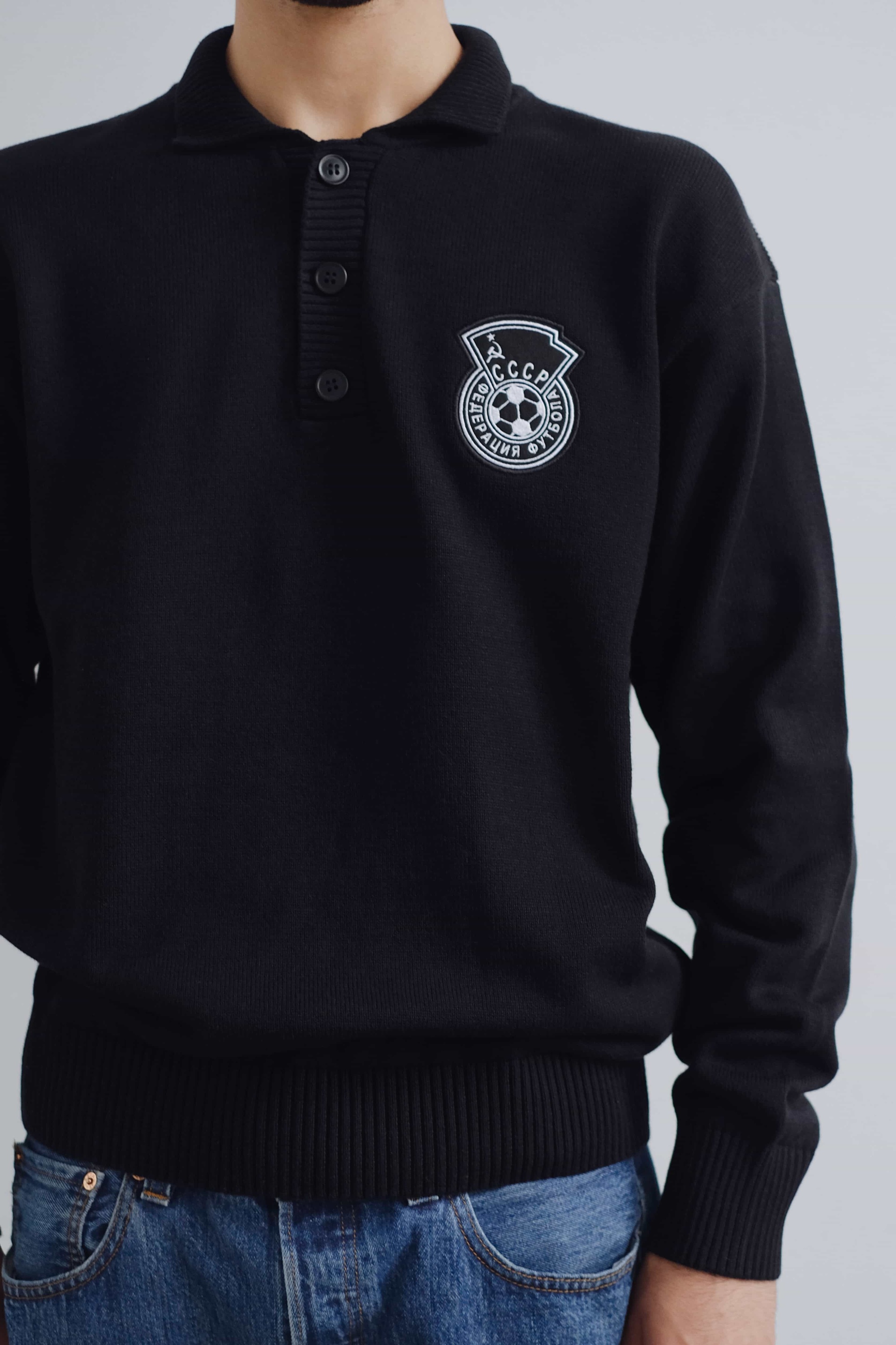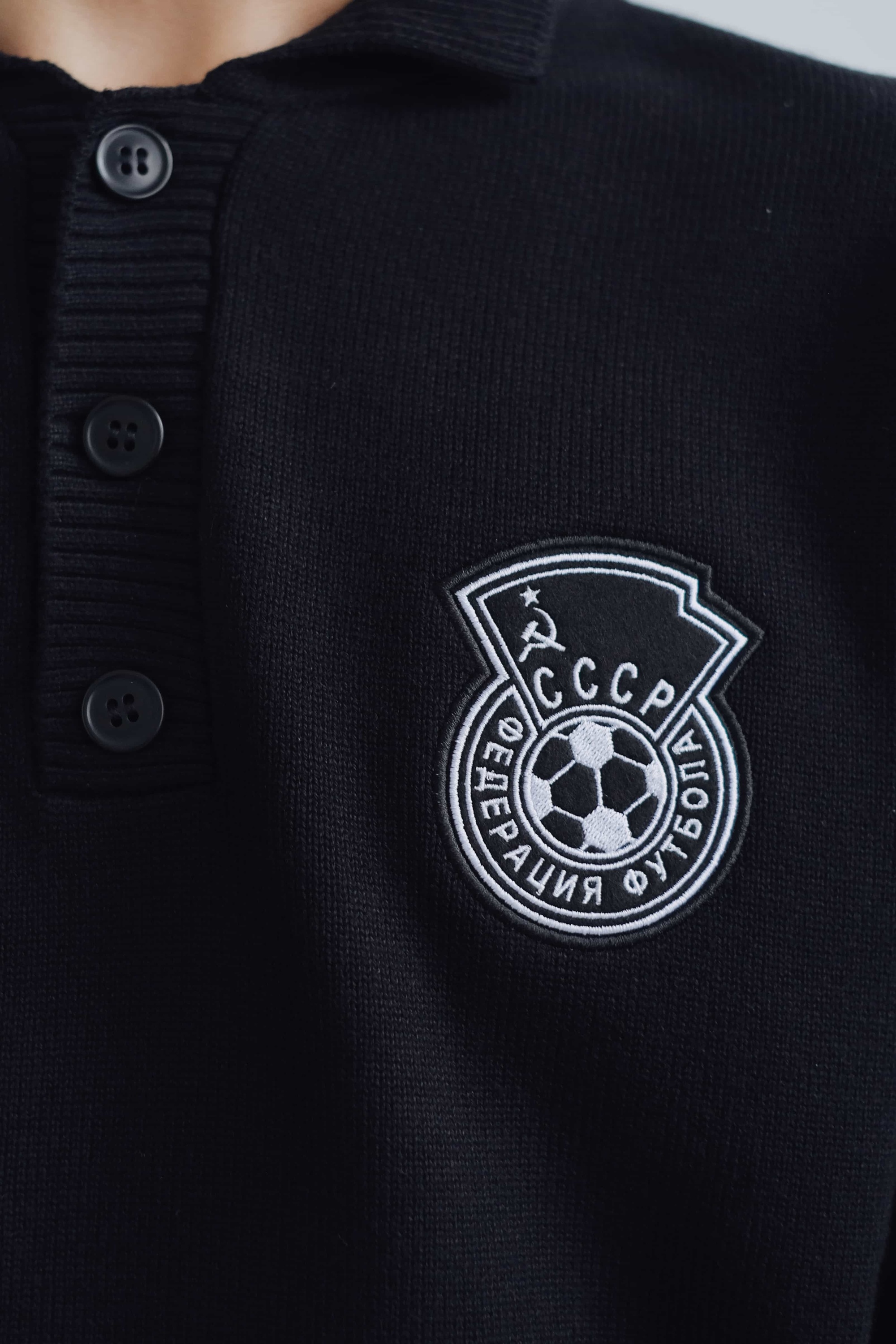 На груди - узнаваемая эмблема легендарной "Федерации футбола СССР", созданной 6 мая 1959 года путём преобразования основанной в 1934 году Секции футбола СССР.