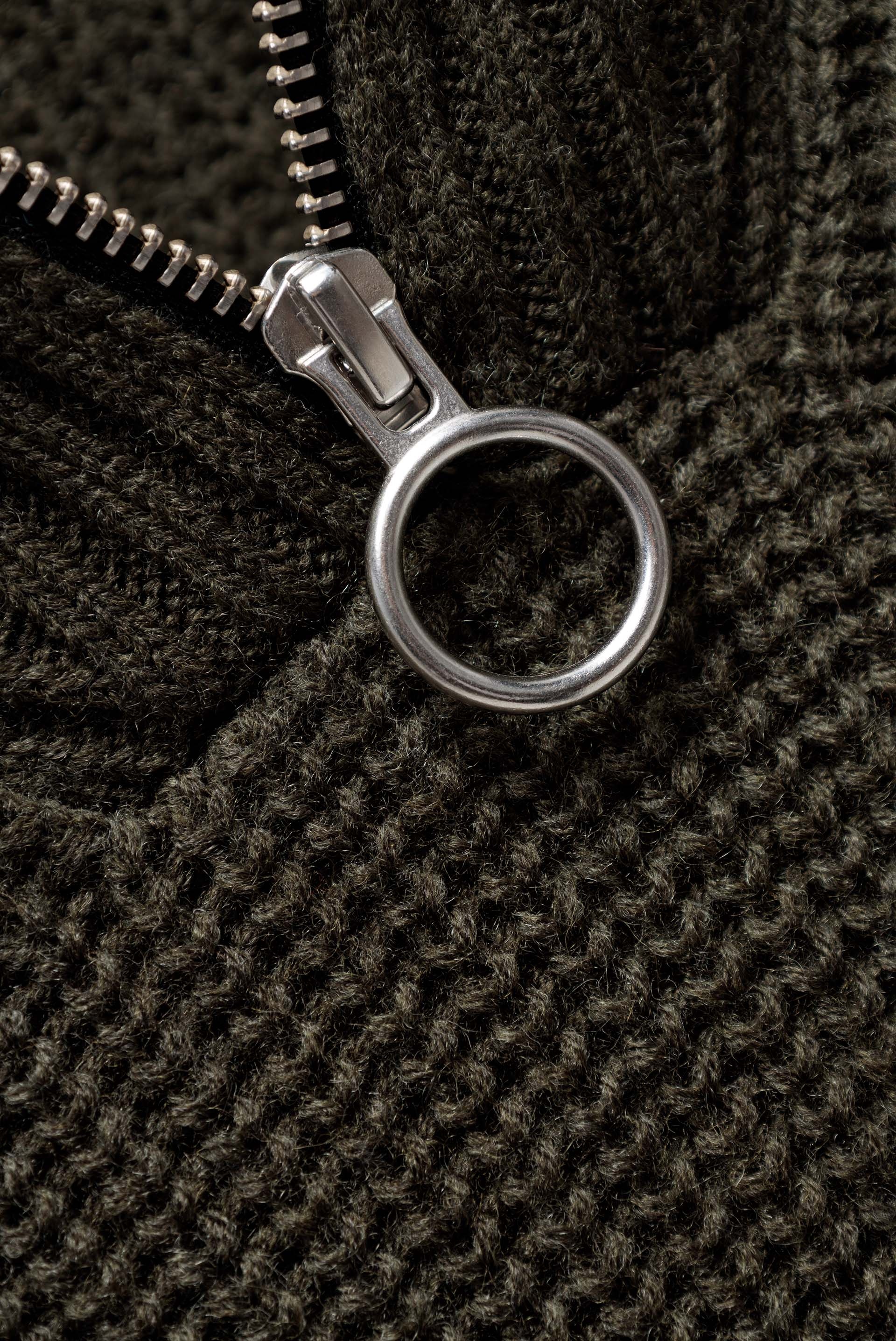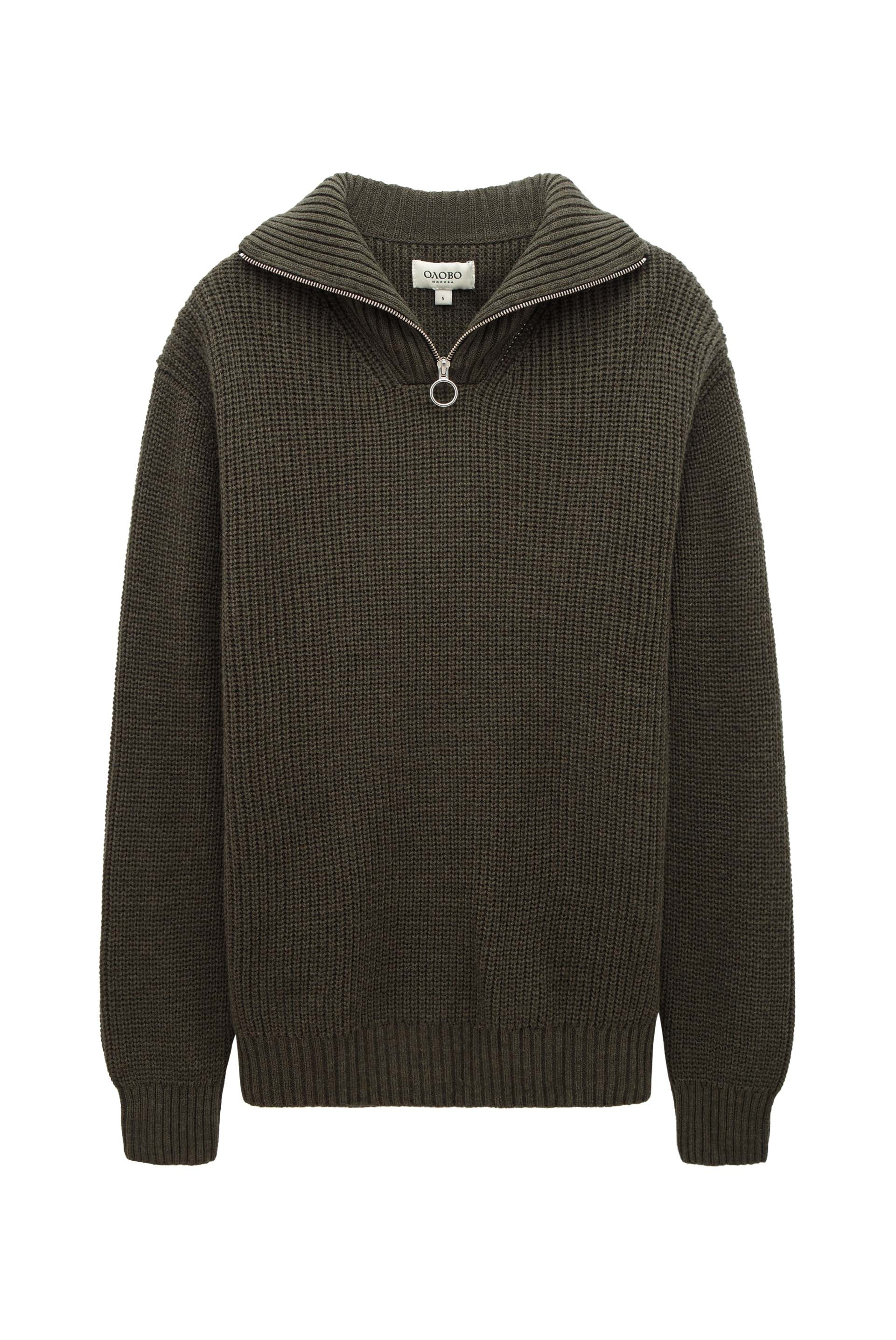 Свитер ОЛОВО фактурной вязки выполнен из легкой приятной телу пряжи мериноса с добавлением акриловых волокон, благодаря чему модель отлично согревает в холодную погоду. Свитер имеет высокую горловину, застегивающуюся на молнию.