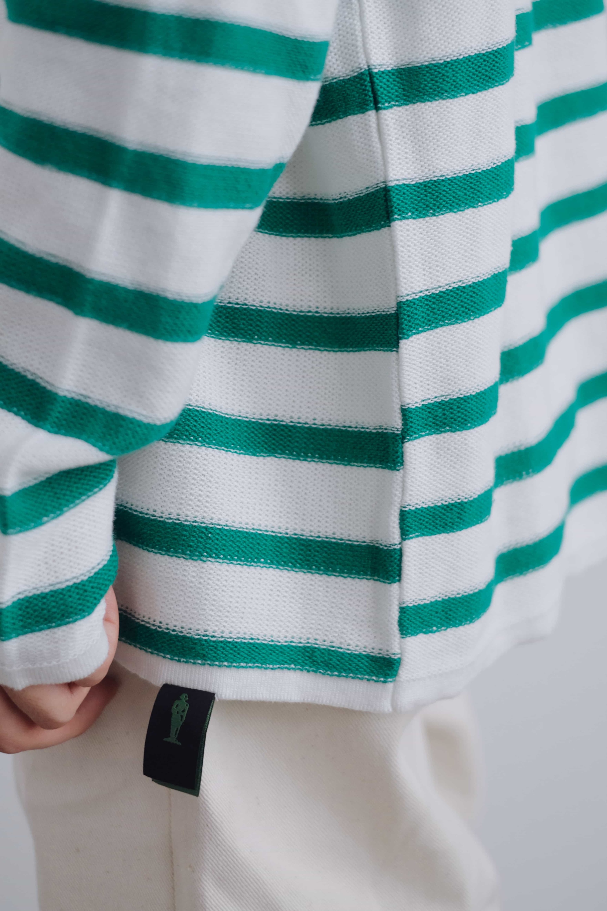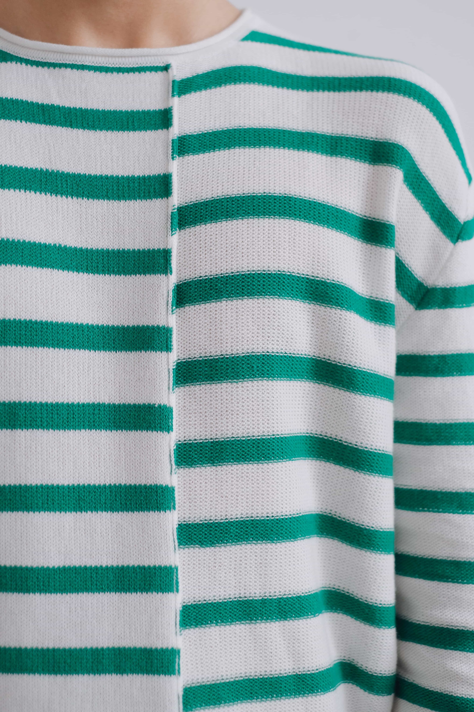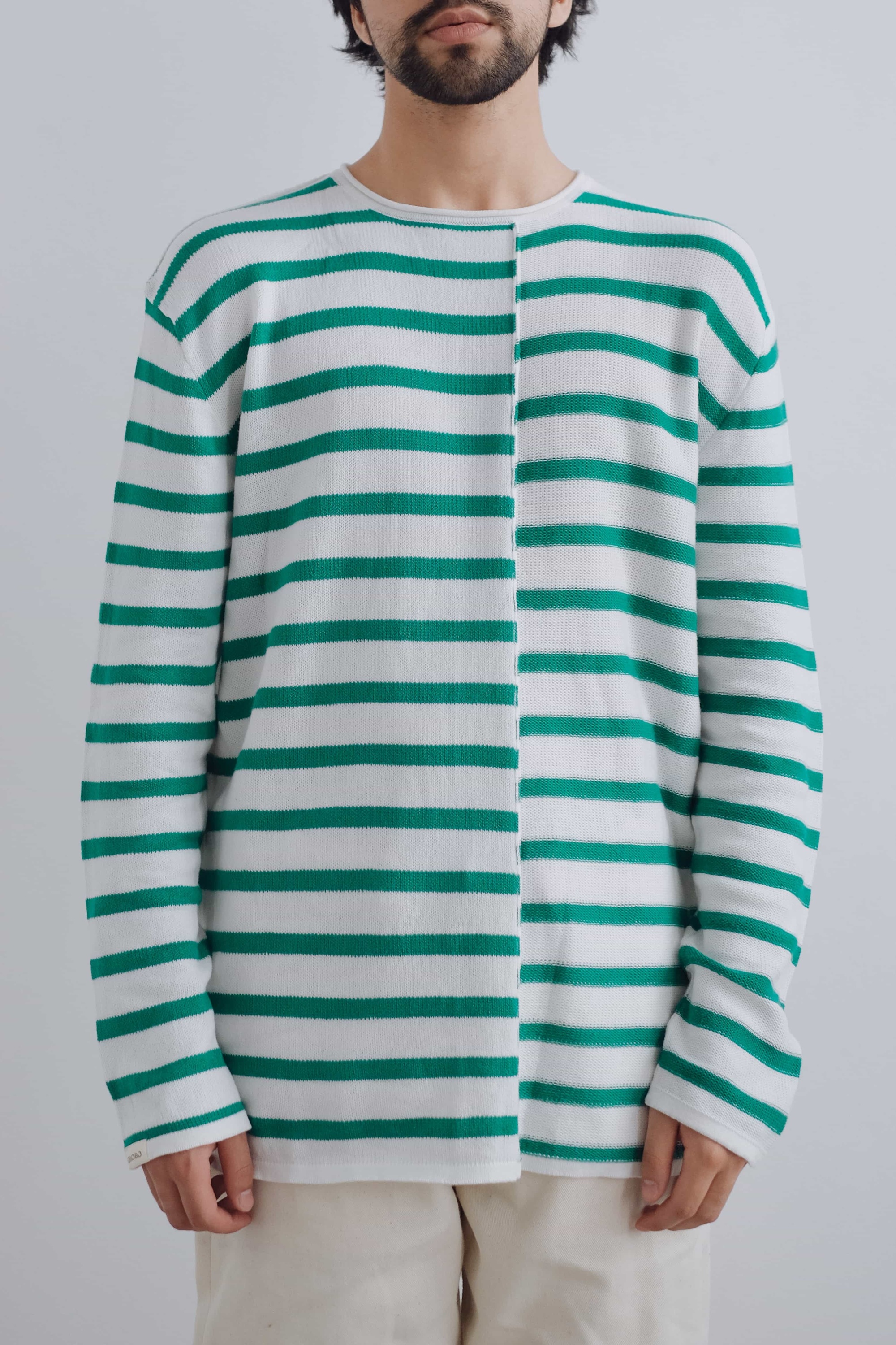 Вязаный лонгслив создан на основе классической штурманской тельняшки БЧ-1 ВС СССР с узнаваемыми полосками на груди.