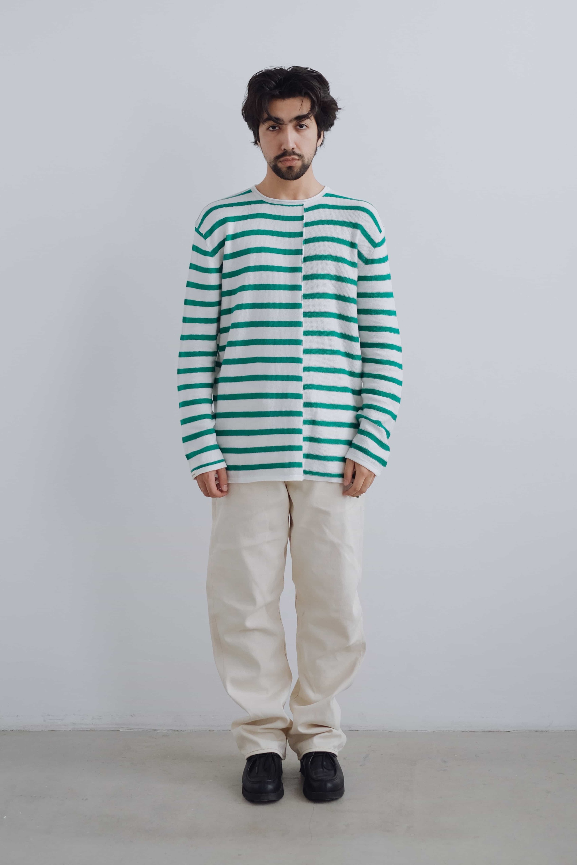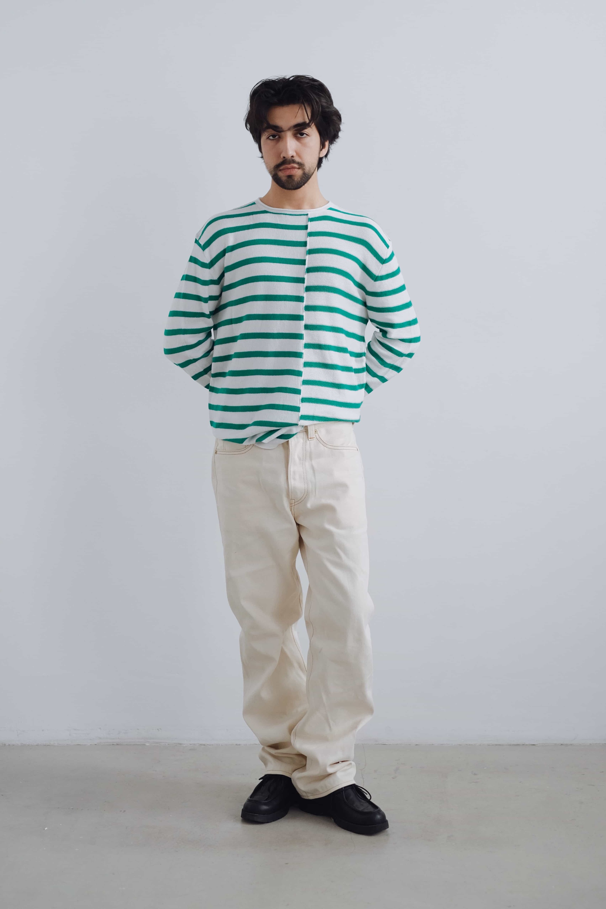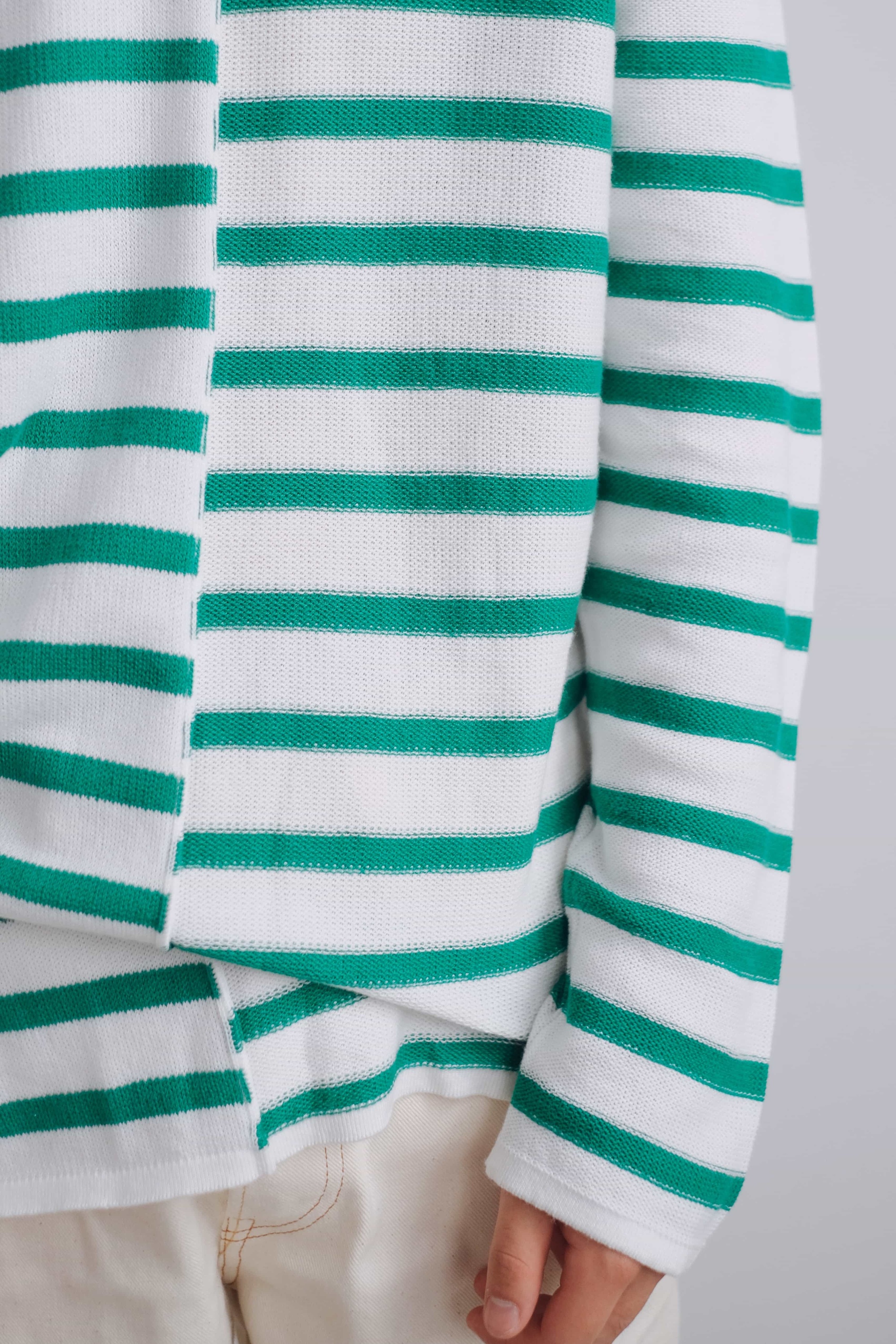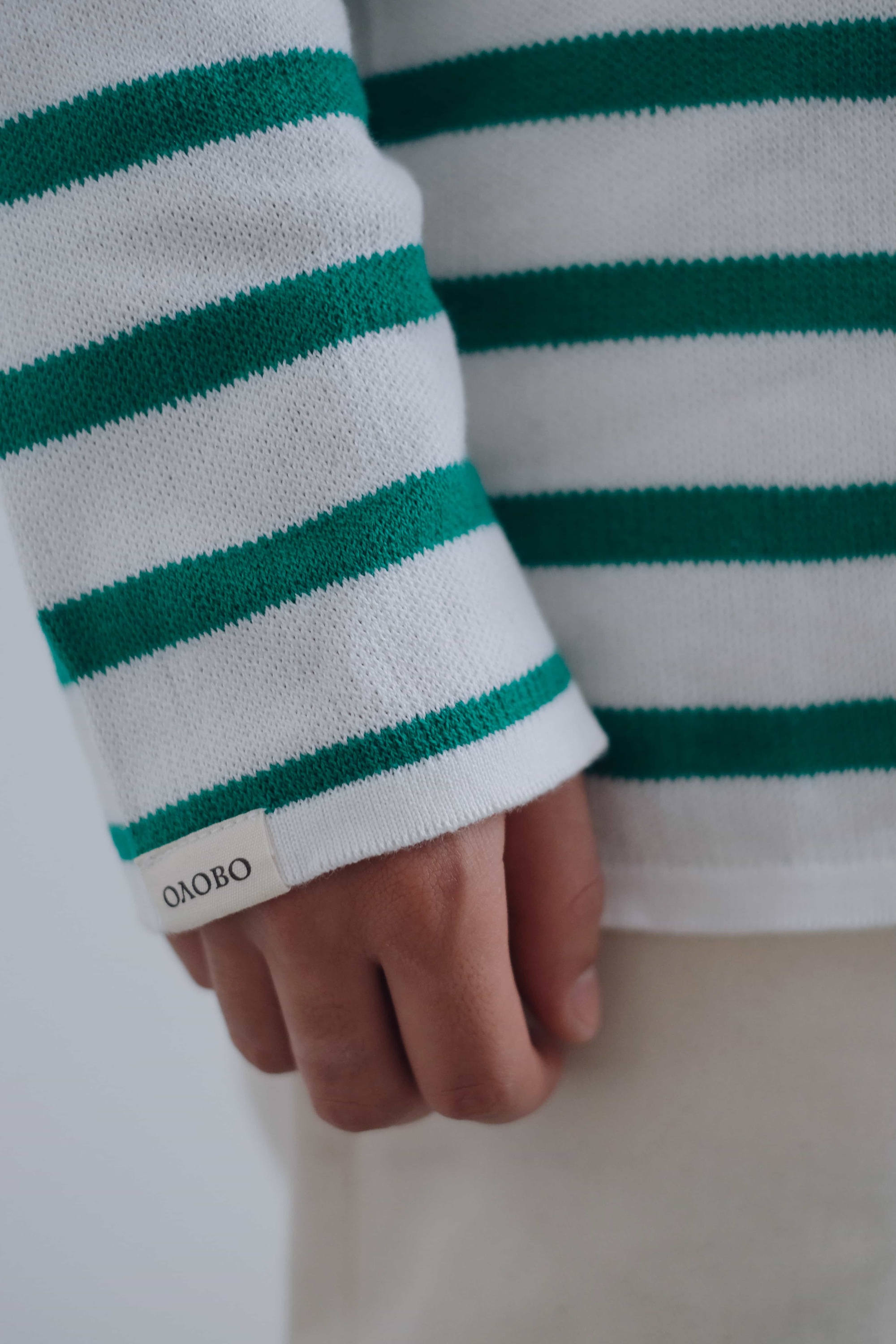 Вязаный лонгслив создан на основе классической штурманской тельняшки БЧ-1 ВС СССР с узнаваемыми полосками на груди.