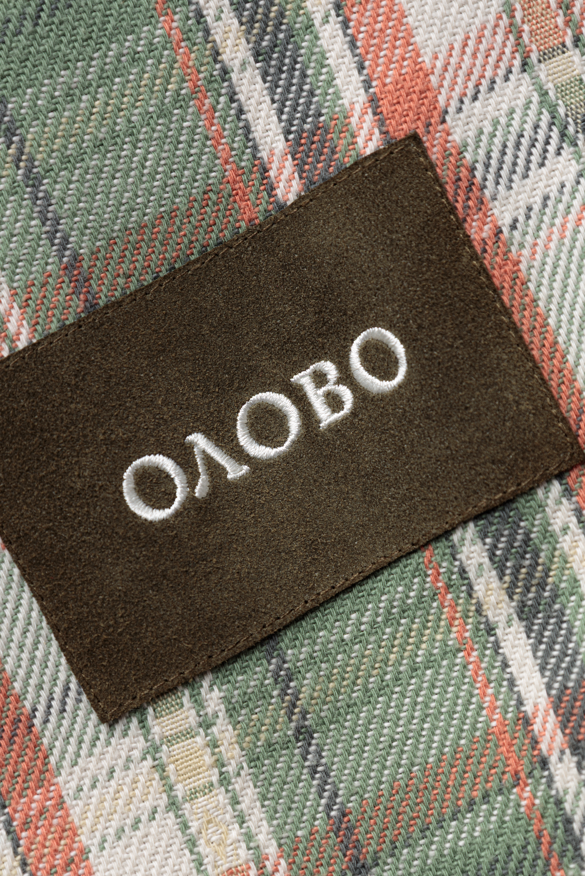 Рубашка из клетчатого японского хлопка Shuttle notes с замшевым патчем ОЛОВО.
