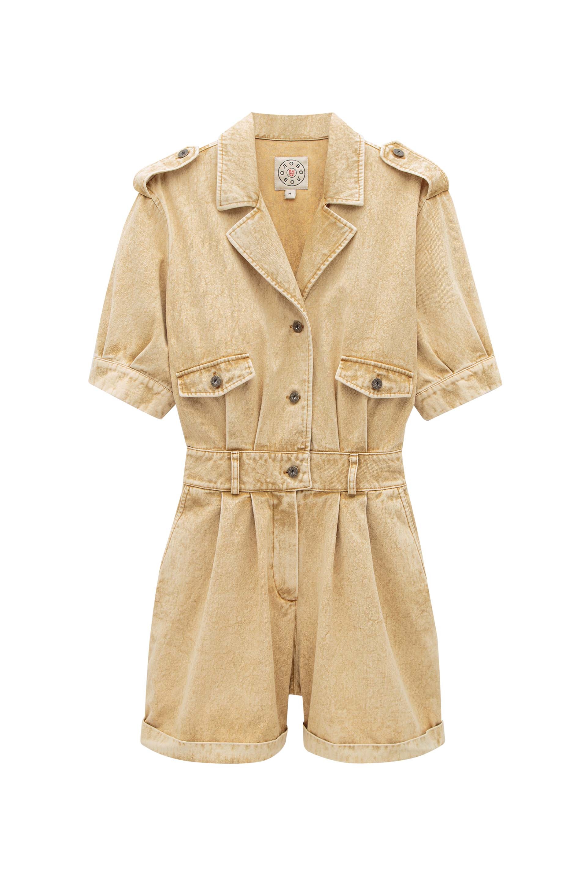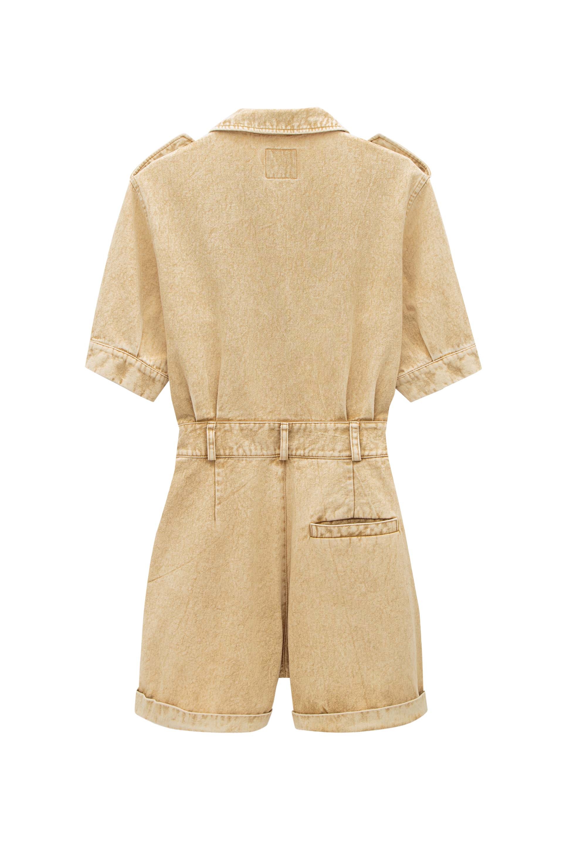 Стиль комбинезона отсылает к эстетике сафари и включает характерные элементы: