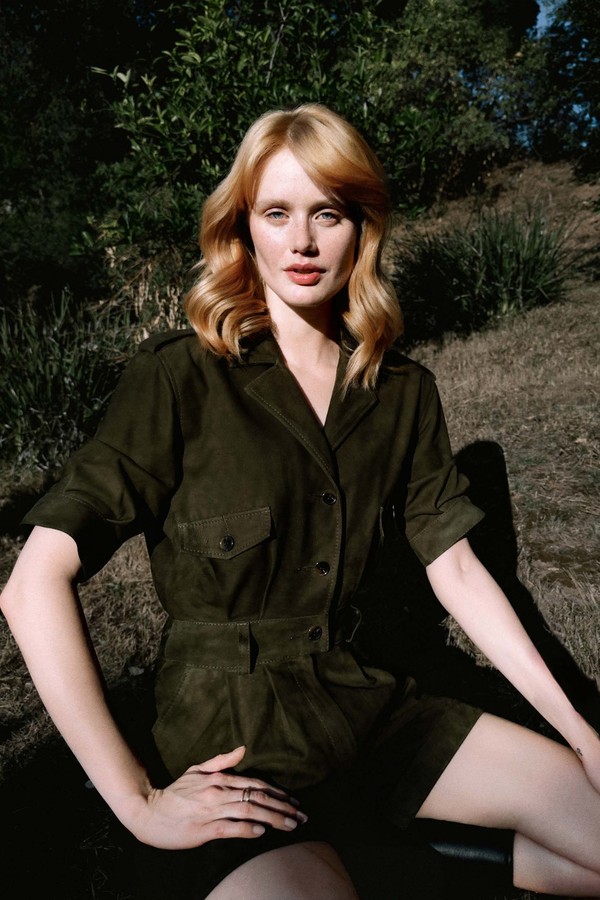 Стиль комбинезона отсылает к эстетике сафари и включает характерные элементы: нагрудные карманы с клапанами,