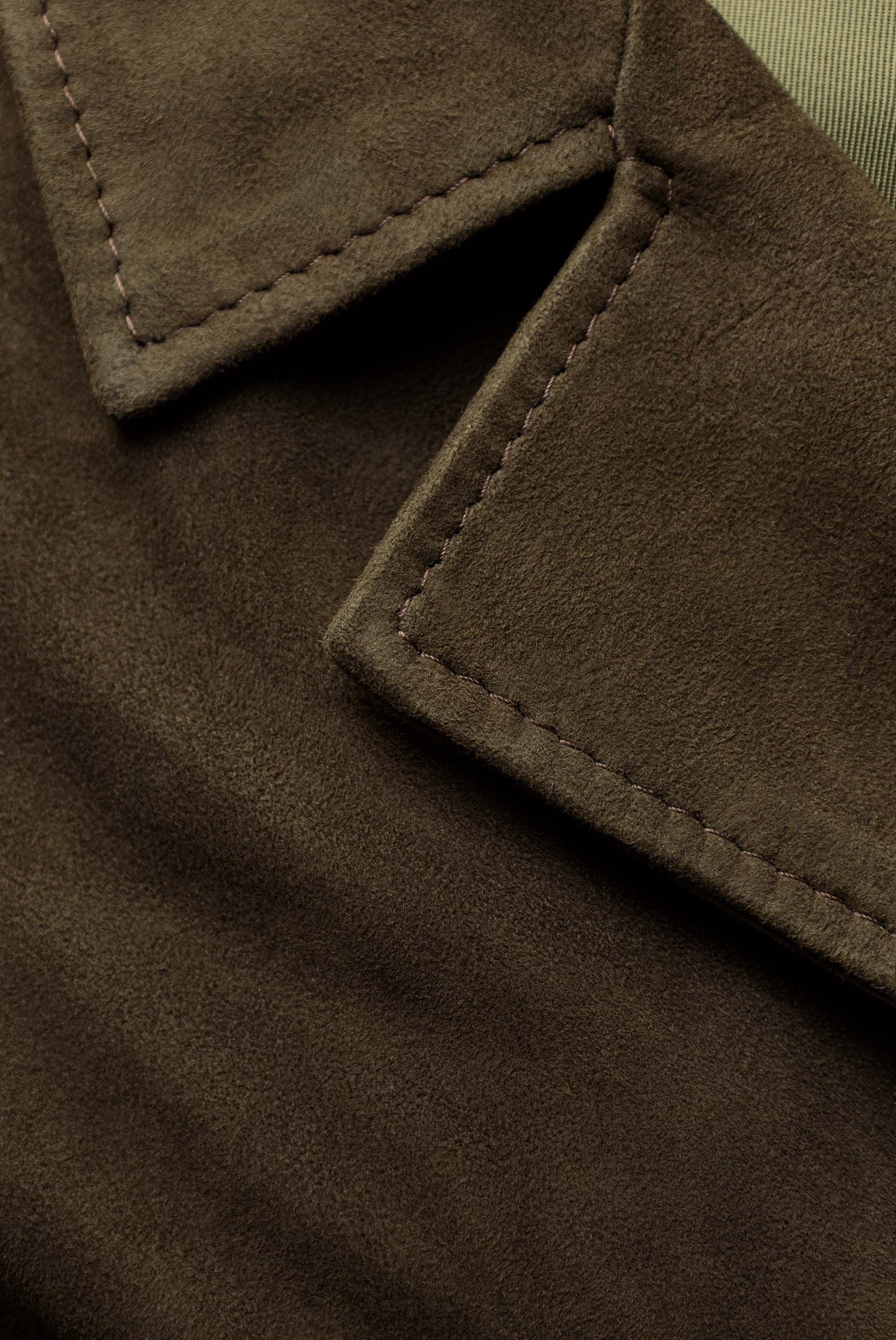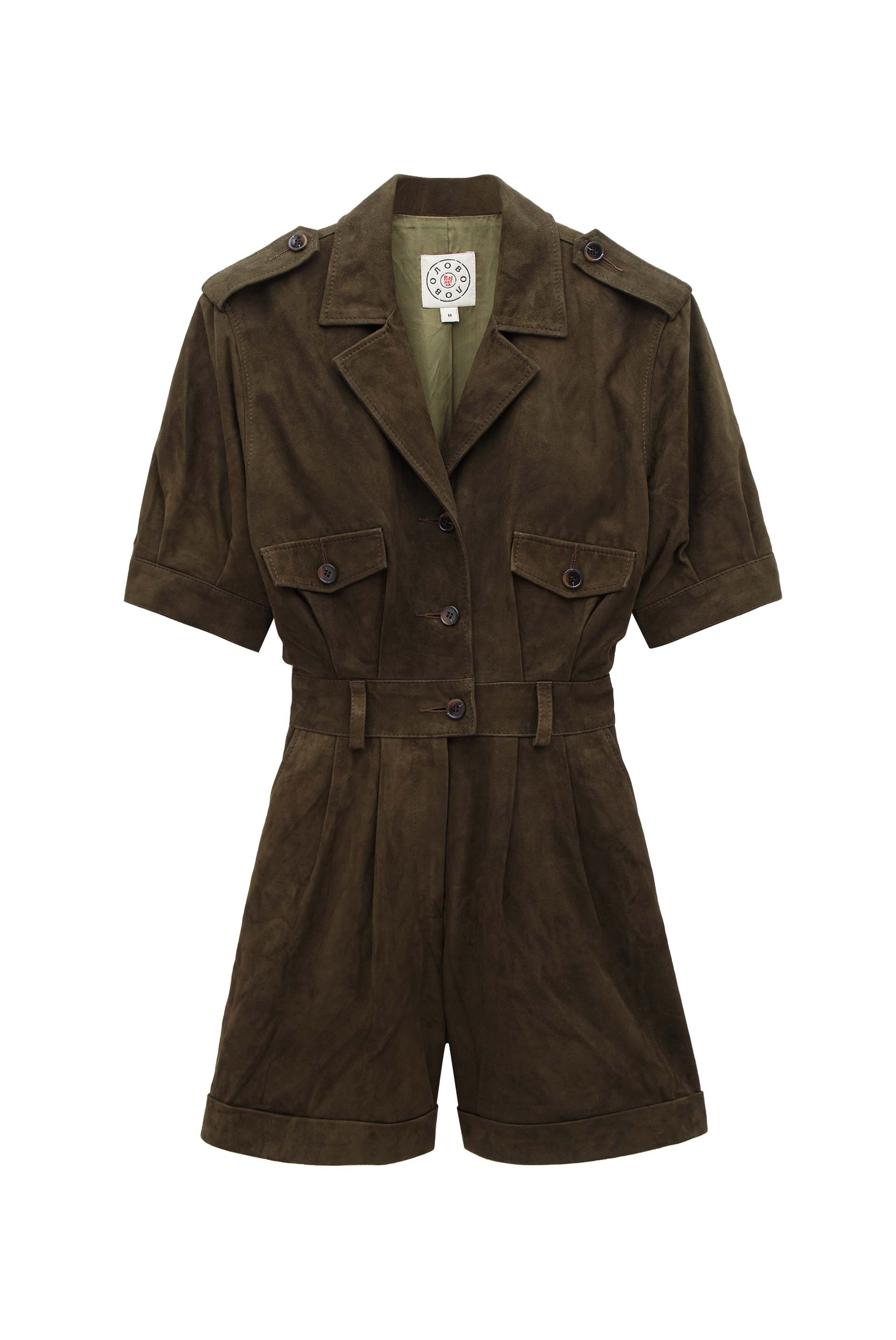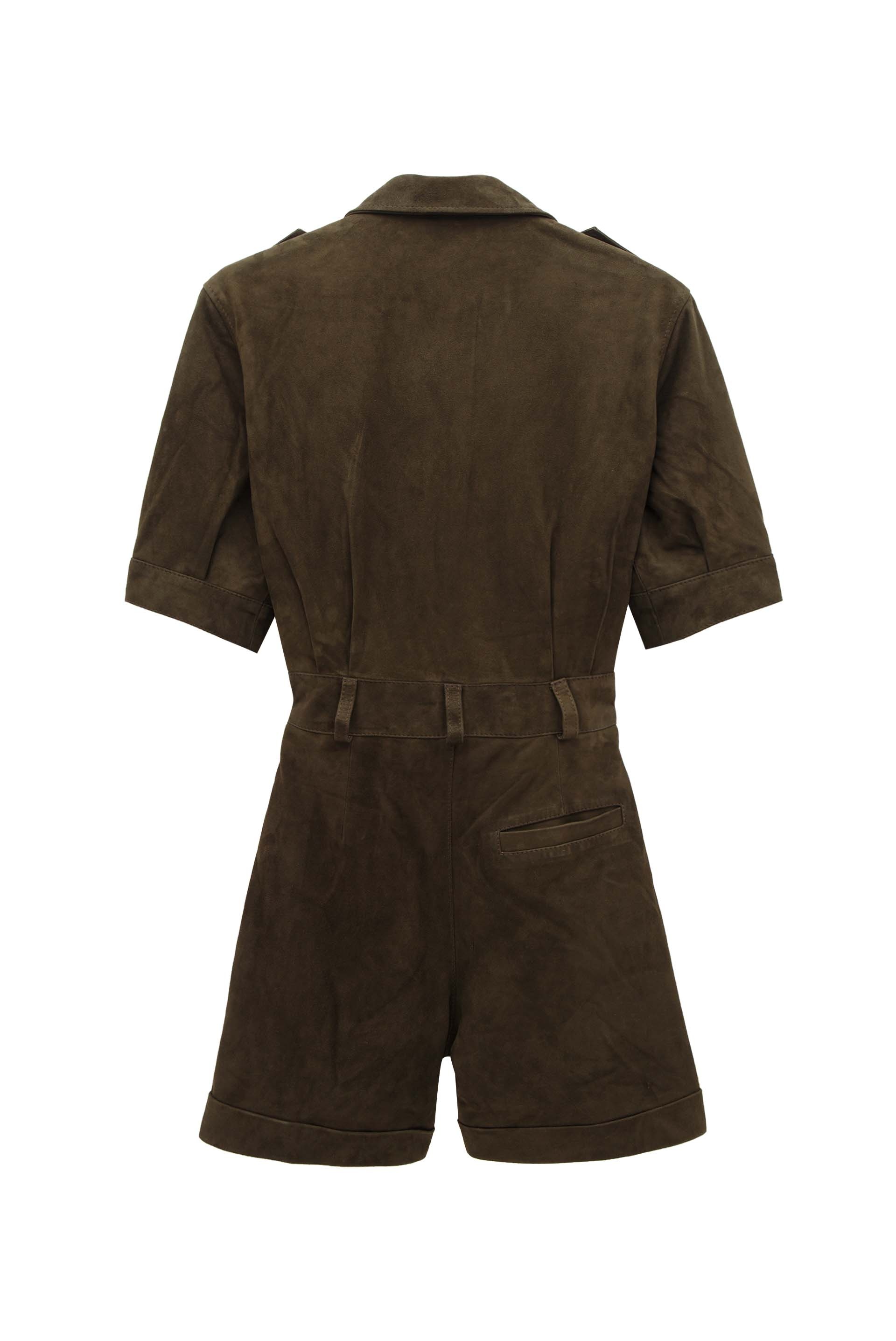 Комбинезон с мини-шортами выполнен из натуральной замши.
