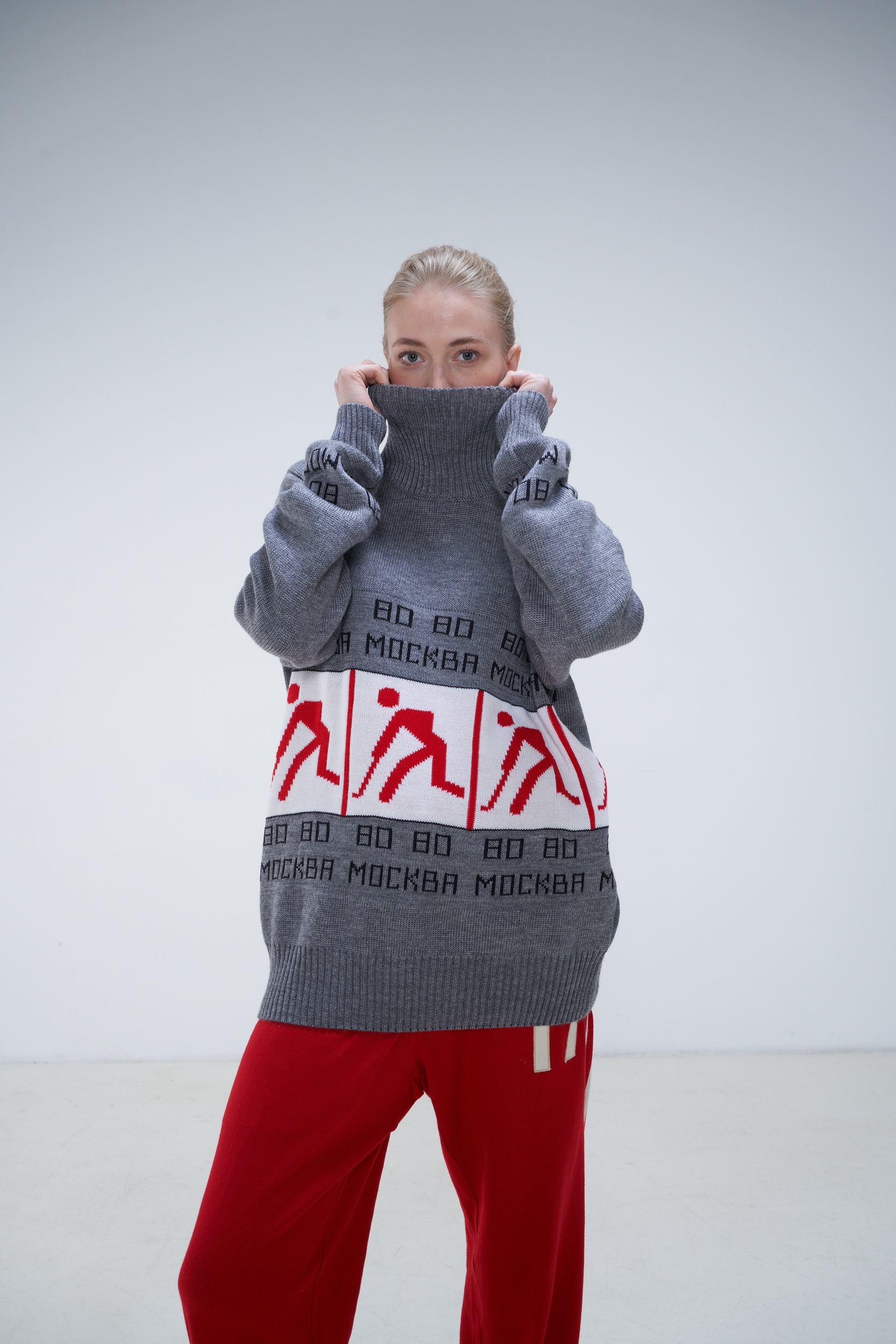 OLOVO high neck sweater is made of high quality wool and acrylic blend. The model is inspired by the XXII Summer Olympics 1980 held in Moscow. The ornament uses the original design of 1980, which symbolizes  field hockey. The tournament was held at the Minor arena of "Dinamo" stadium, as well as the stadium of Young Pioneers in Moscow, and for the first time at the Olympics played women's teams. The Soviet athletes won two bronze medals in this discipline.